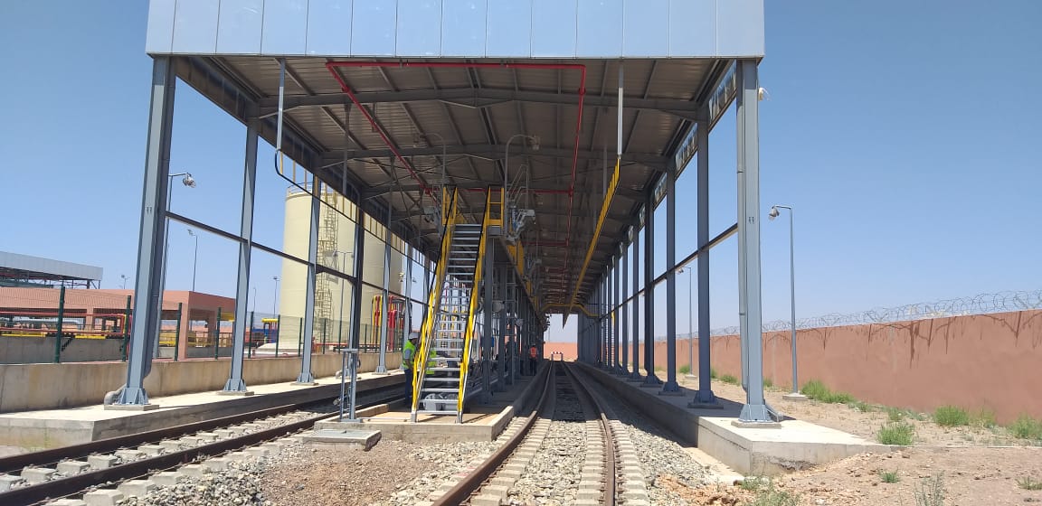 Travaux de construction d’un atelier pour « spreader » en charpente métallique.