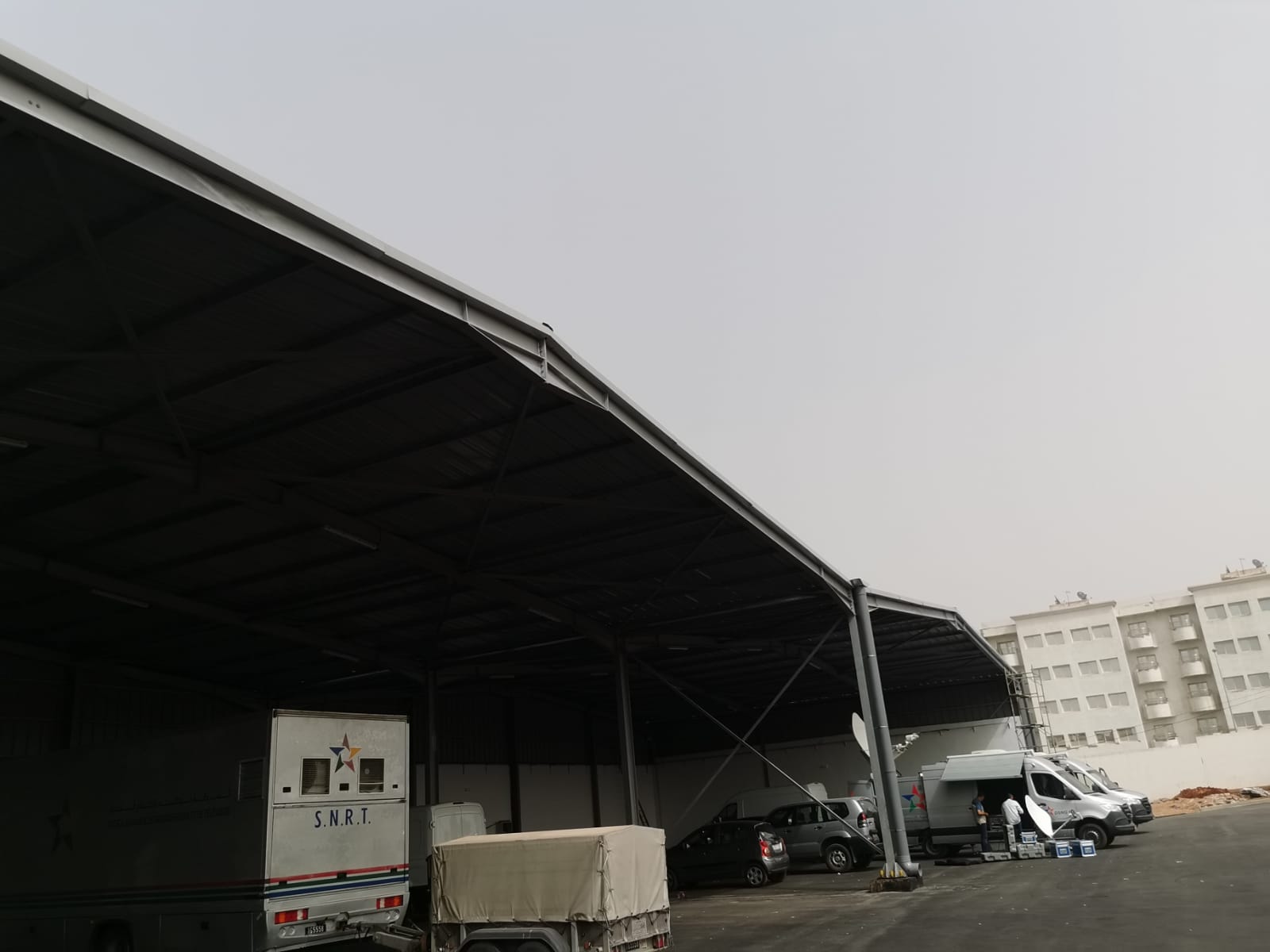 Travaux de construction d’un abri pour les cars régis au centre SNRT à Témara.